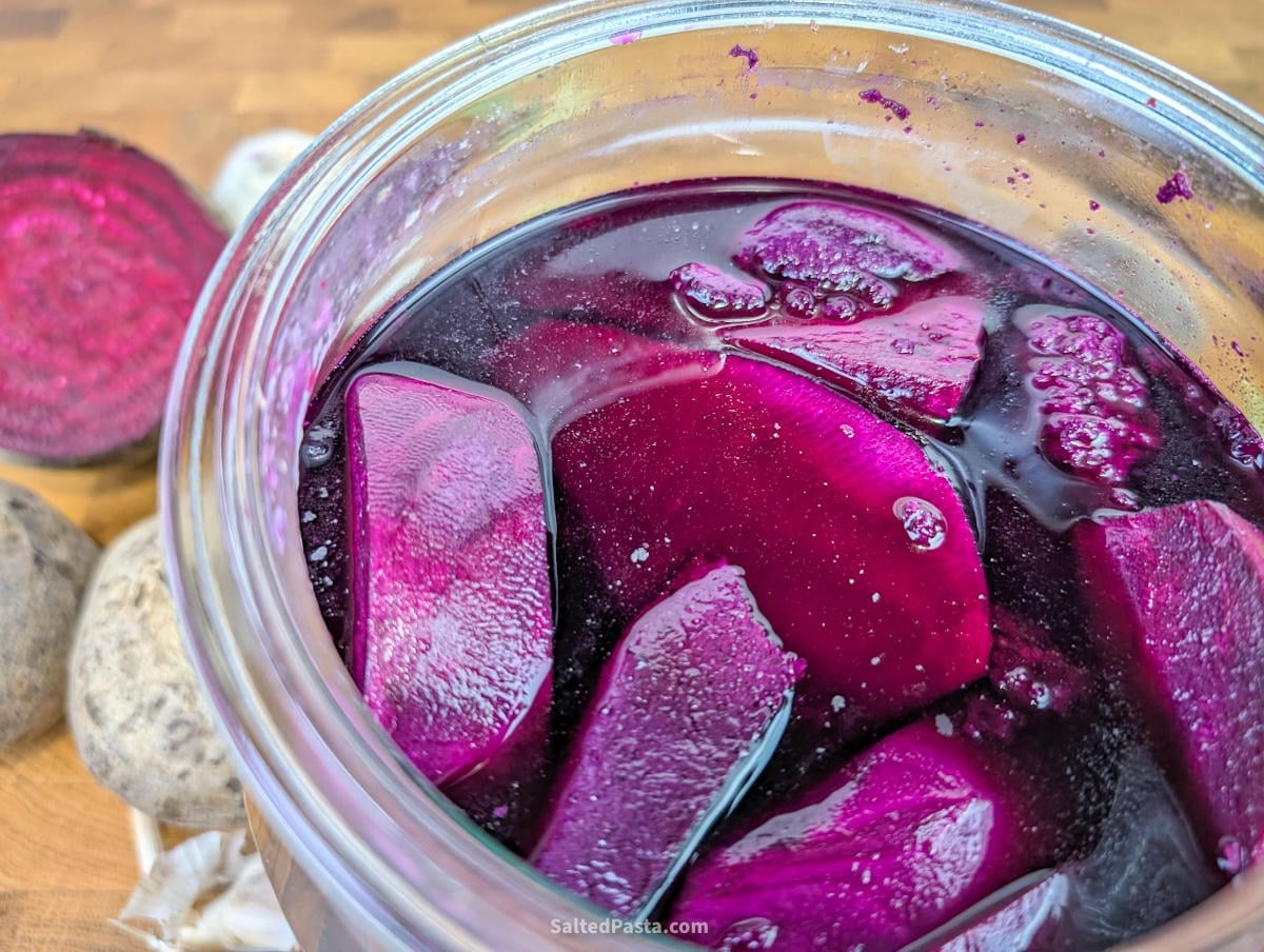 - Proportions: The amounts of water and beets are approximate. Adjust them according to the size of the container you’re using. As a general rule, fill about ⅔ of the container with beets and then pour in enough water to fully cover them so that nothing sticks out above the surface.