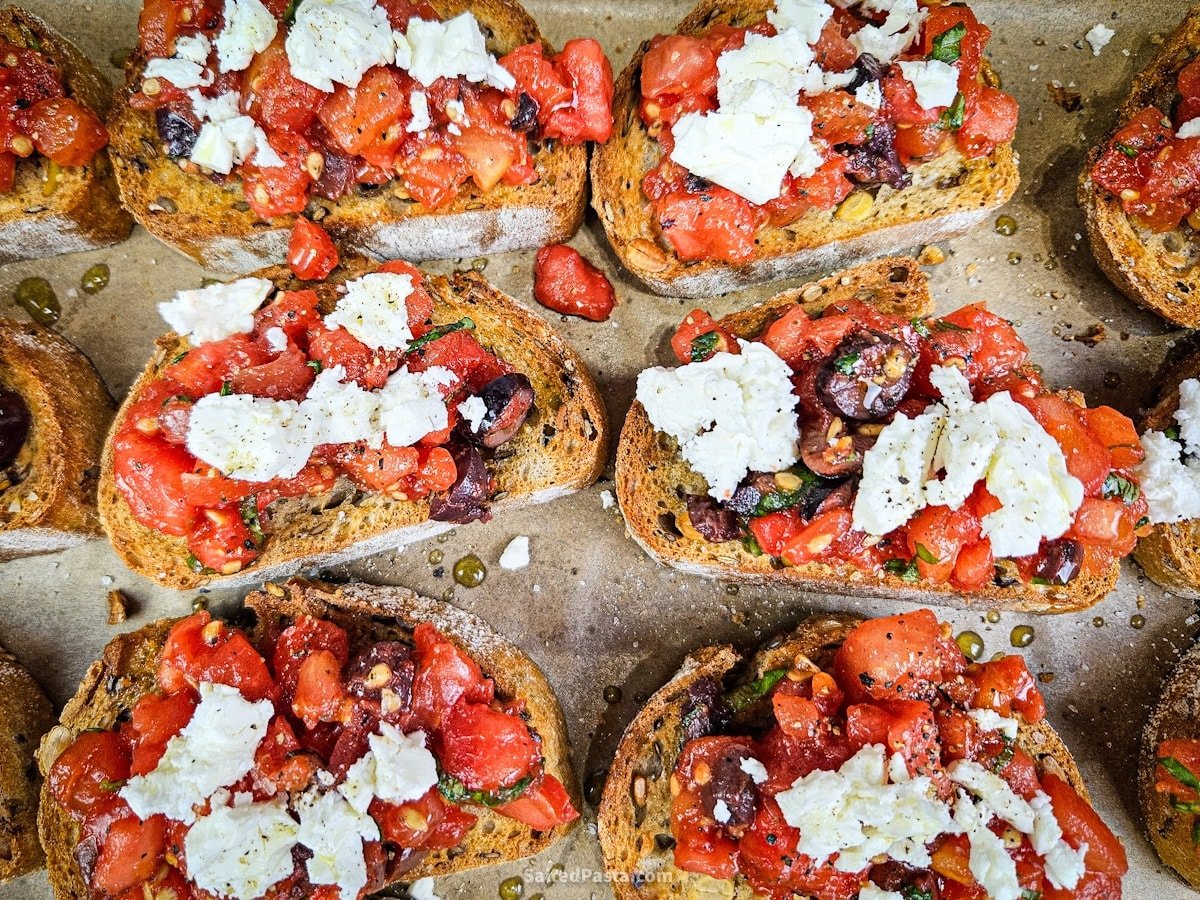 Read the step-by-step recipe for how to make the best bruschetta with olives and feta, and watch the video below.