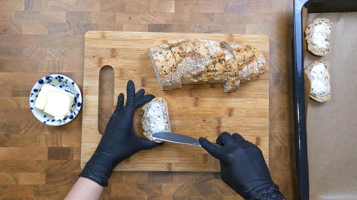 • 400 g bread (e.g. 1 loaf of woodcutter's bread, 1 large baguette, 5 rolls e.g., ciabatta)