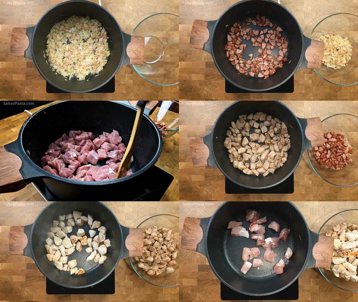 - In a pan, fry the bacon until the fat is rendered, then add the onions and cook until golden. Transfer to a large pot, in which you will cook the bigos. Then, fry the sausage and all the meats in the pan one by one. If the pan becomes too dry, you can add fat to the pan. I fry all the meats first to ensure they are juicy. Do not stir the meats while frying to prevent them from releasing water.2 tbsp butter