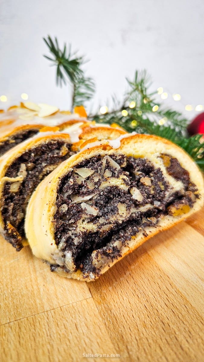 The following proportions make 3 poppy seed cakes, each weighing approximately 1kg. Read the step-by-step recipe for how to make the best rolled Polish makowiec and watch the video below. Also, subscribe to the SaltedPasta YouTube channel and sign up for the newsletter so you don’t miss any recipes!