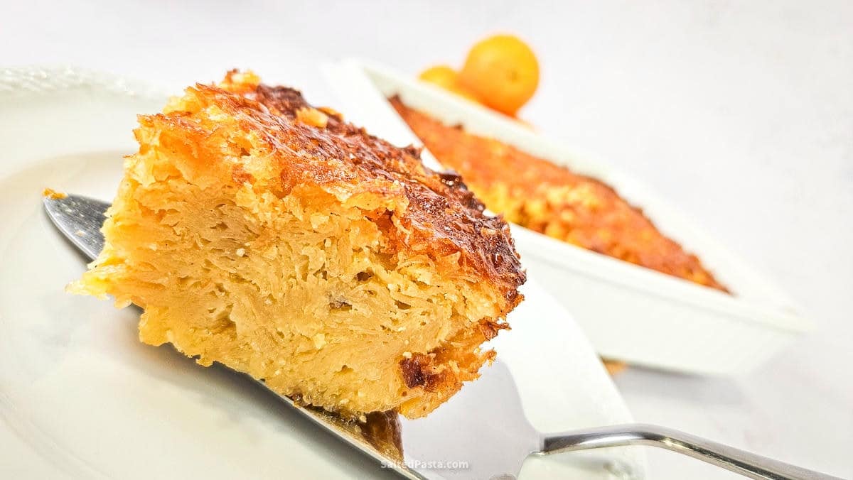 - Ciasto: Zamiast ciasta filo możesz użyć surowego (lub usmażonego, wtedy nie trzeba go suszyć) ciasta kataifi. Nie trzeba już go wtedy kroić. Ale moim zdaniem portokalopita ma lepszą strukturę z ciastem filo, a syrop lepiej w nią wnika.