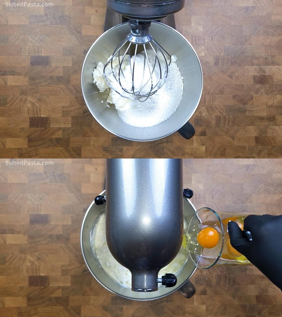 Na zagranicznych blogach najpopularniejszy jest serek Philadelphia ale umówmy się jest to dość droga opcja i trudno dostępna w Polsce. Raczej trzeba go szukać w dużych marketach niż w dyskontach. Ja zawsze używam sera z wiaderka przeznaczonego na sernik o ZAWARTOŚCI TŁUSZCZU MINIMUM 18%. To bardzo ważne. Im bardziej tłusty ser tym bardziej kremowy sernik. Do tego przepisu użyłam twarogu o zawartości tłuszczu aż 24% tłuszczu (Deluxe z Lidla) i sprawdził się super! Sernik wyszedł idealnie kremowy! Zazwyczaj do serników w stylu nowojorskim używam sera 18% tłuszczu z Piątnicy i też go bardzo polecam. Dzięki temu, że ser jest tłusty nie trzeba już dodawać masła.
