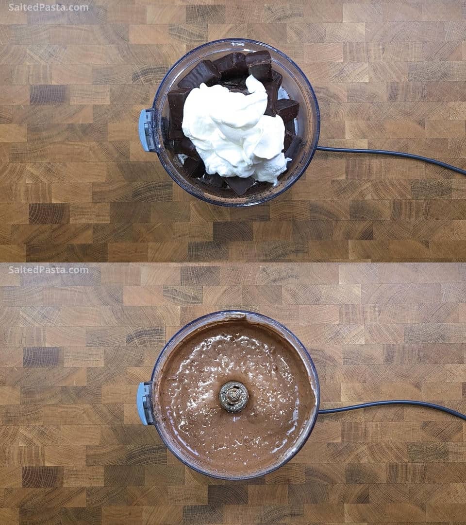 - Wszystkie składniki wyciągnij wcześniej z lodówki. Najlepiej by osiągnęły temperaturę pokojową. Do malaksera włóż cukierki i kwaśną śmietanę. Zblenduj razem do uzyskania gładkiej masy. Jeśli zostaną małe grudki cukierków nic nie szkodzi.500 g trufli czekoladowych, 200 g kwaśniej śmietany 18%